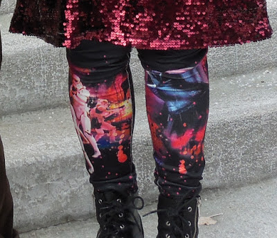 This was last year. The leggings are too big/baggy, but I don't care-I love them. This time around I wore a gold and silver flapper-like dress and an oversized 80's jacket.